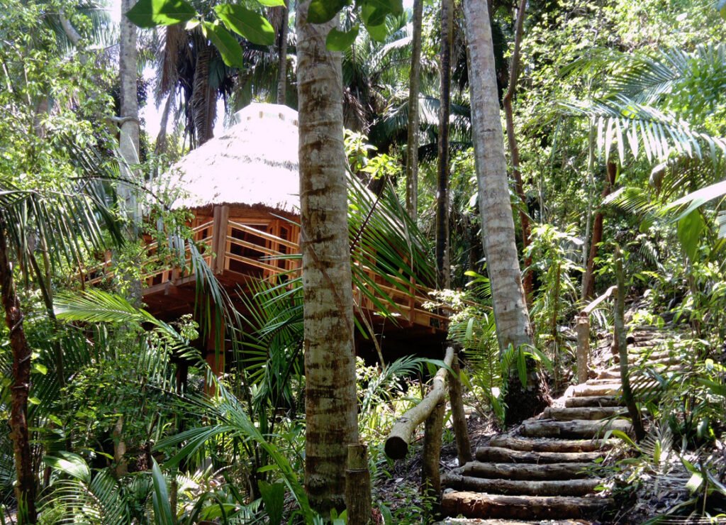 Contamos con tres cabañas independientes diseñadas para que una pareja tenga todo lo que necesita en un mismo espacio, la cual al tener un sofá del cual salen dos camas indiviudales, da la posibilidad de albergar una familia de hasta 4 personas. Su cocineta completa, su baño seco y su closet están cuidadosamente diseñados para pasar desapercibidos en el espacio central, cuyo domo deja entrar la luz cenital iluminando la cabaña y creando un ambiente sumamente especial. Cuenta con una terraza con su mesa, sillas y dos sillas acapulco para relajarte y disfrutar de la selva. La regadera se encuentra al aire libre lo que hace de bañarse una experiencia única.
