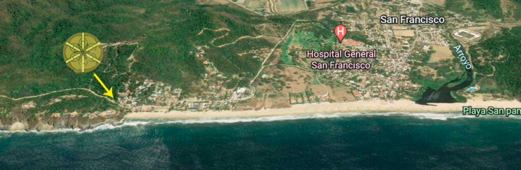 La locación de Aldea Bambú es privilegiada; lo suficientemente alejada del pueblo de San Pancho para evitar el bullicio cotidiano pero suficientemente cerca para acceder a toda la oferta cultural y culinaria que el bello pueblo ofrece. A unos pasos de la parte más hermosa, tranquila y menos visitada de la playa, los atardeceres son verdaderos espectáculos que nos muestran la majestuosidad de la vida. Inmersos en la selva baja cudisifolia, rodeados de una vegetación sin alterar, las instalaciones de bambú se levantan orgullosas de haber respetado cada árbol y cada palma en su construcción.