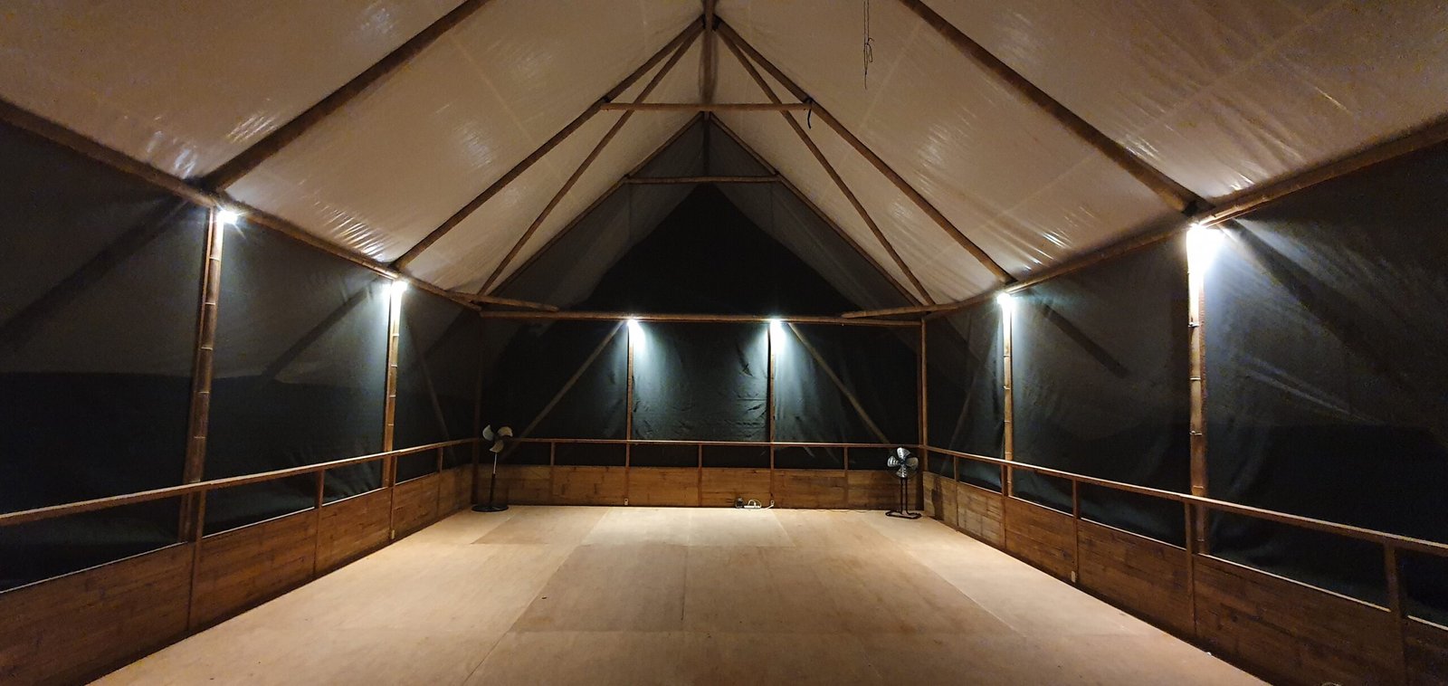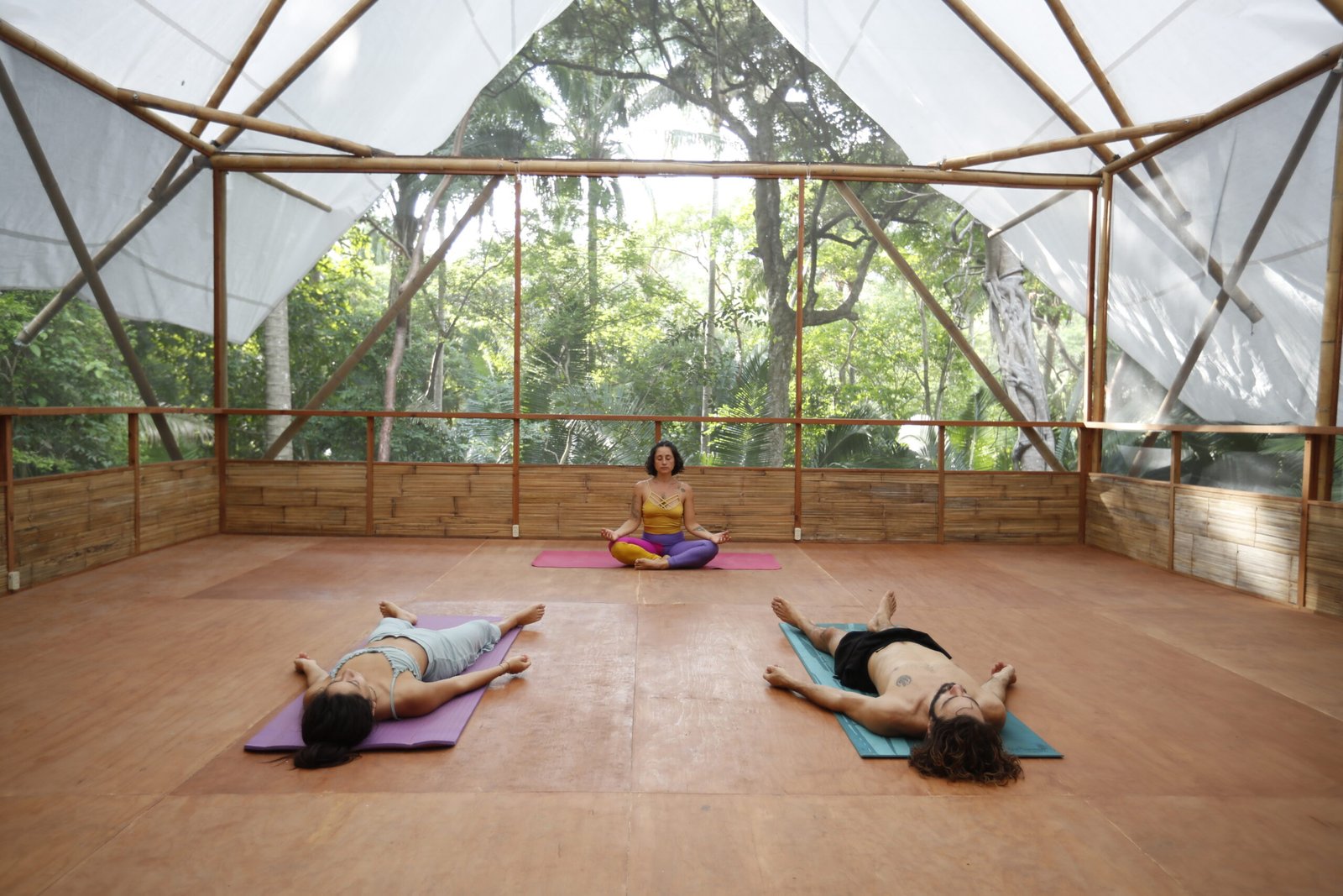 Nuestro gran salón Sushumna de usos múltiples, cuenta con vista a la selva, piso se madera y mosquitero; debajo de este se localiza la habitación grupal con tres literas y otra habitación con tres camas individuales. Ambas habitaciones cuentan con terraza y con baños secos y regaderas exteriores.