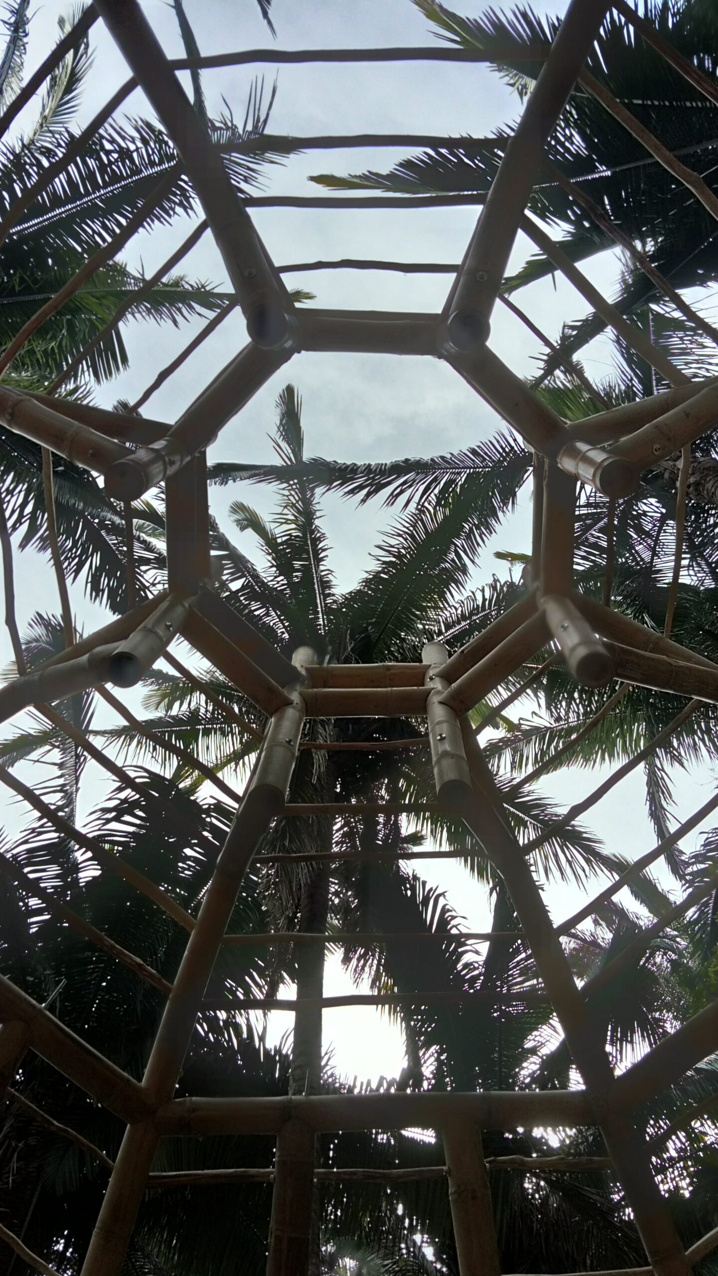 La construcción con bambú es un material sumamente ecológico, duradero y bello. Las cabañas se levantan en pilotes para no modificar la tierra, lo cual trae el beneficio de mayor frescura a la cabaña y los animales siguen circulando libremente por debajo. Su geometría octagonal le da un ambiente especial que se refleja en el sueño profundo y reparador que experimentan nuestros húespedes. Con el baño seco, a la par que cuidamos el agua y no contribuimos a la contaminación del estero de San Pancho, nos invita a cambiar nuestros hábitos y a vivir por unos días de manera más armónica con la naturaleza; demostrando su buen funcionamiento y creando composta y abono para los árboles. Las aguas grises pasan por unas trampas de grasa y se van al riego de las plantas, por esto todos los productos de limpieza que ofrecemos son biodegradables.