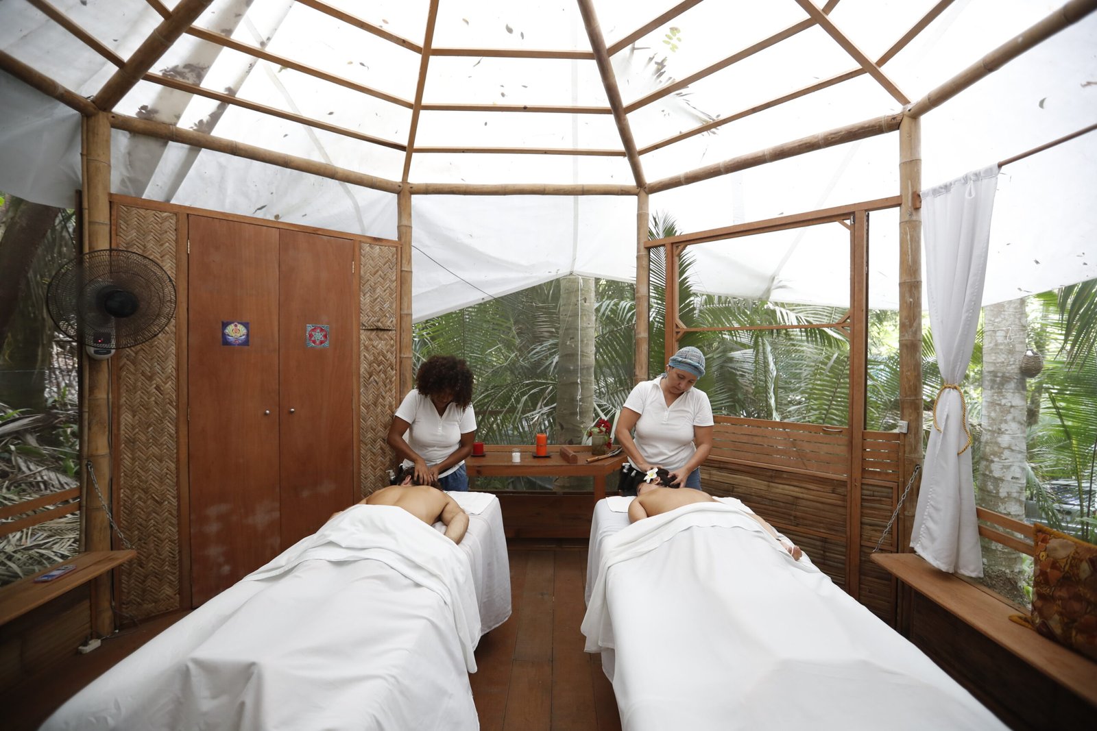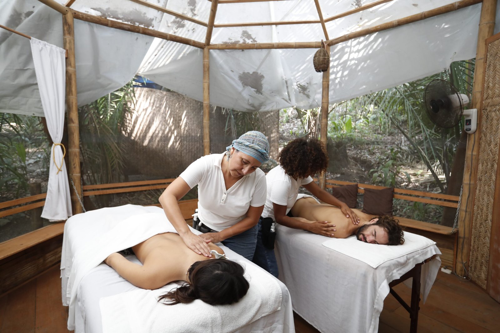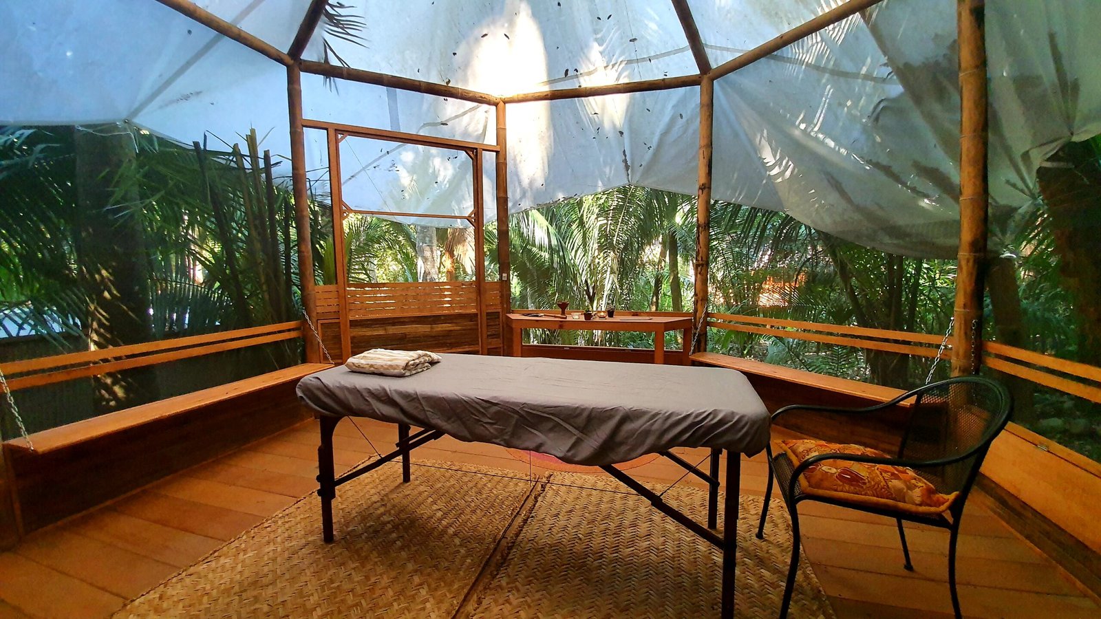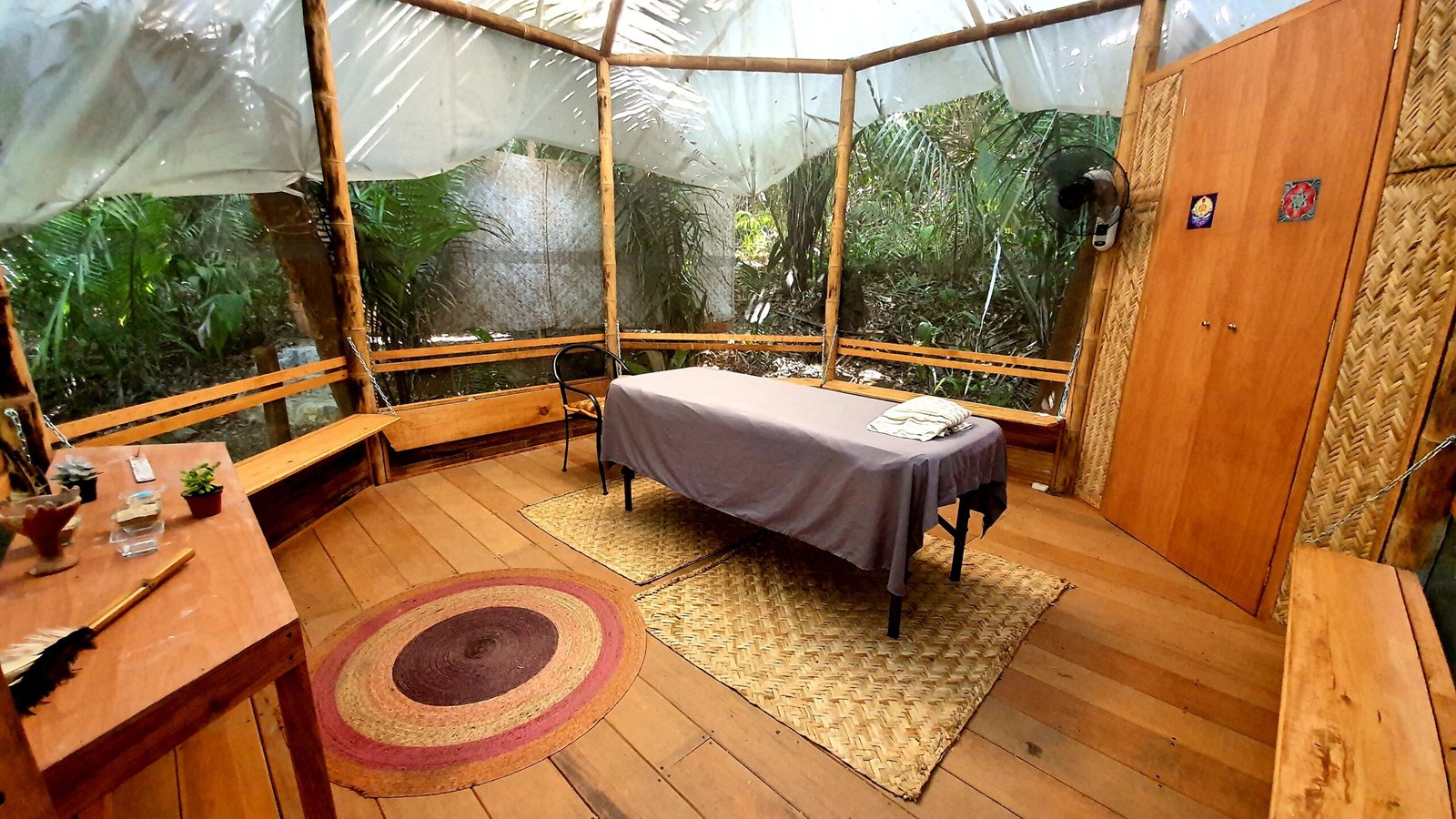 Aldea Bamboo cuenta con una cabaña con mesa de masajes para dar terapias o charlas a grupos chicos.